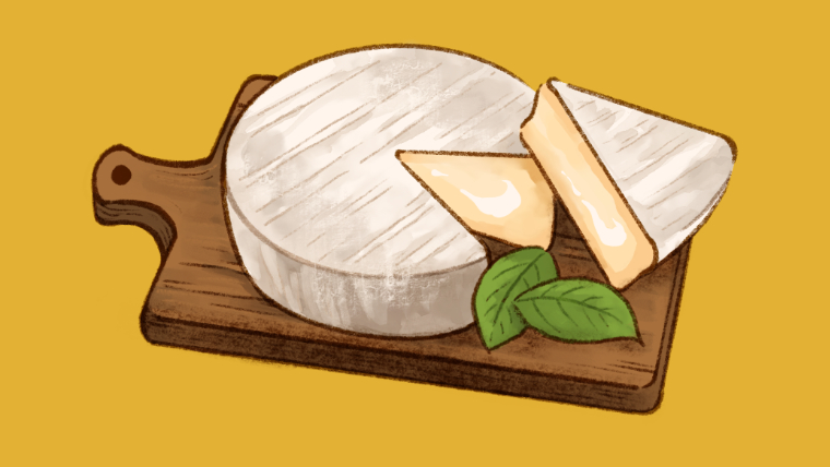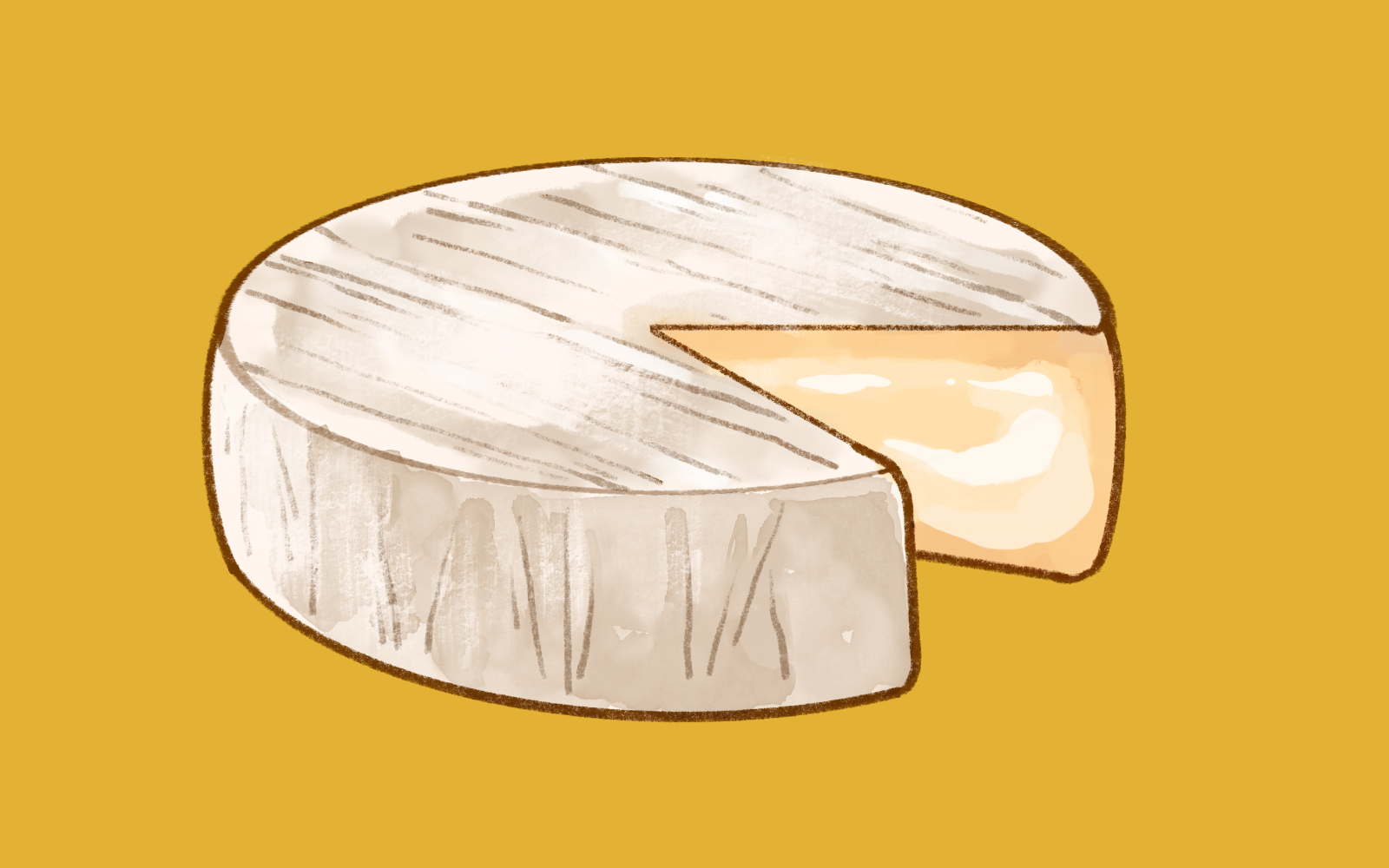 メインのイラストは、見栄えと美味しそうな雰囲気を追求することに最もこだわりました。カマンベールチーズを物語の主役にするために、木のまな板とバジルを添えて、目を引くイラストに仕上げました。